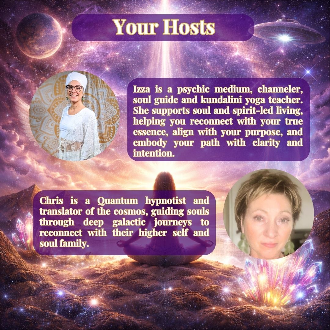 Cosmic Journey: Meet Your Galactic Family brings together Kundalini Yoga, galactic astrology, guided hypnotic journeying, and live Spirit & Soul guidance to support deep personal insight and embodied integration.